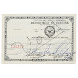 | Lot 215 A Marilyn Monroe signed U.S. Dept. of Defense identification card USD 10,000 - USD 15,000 | |